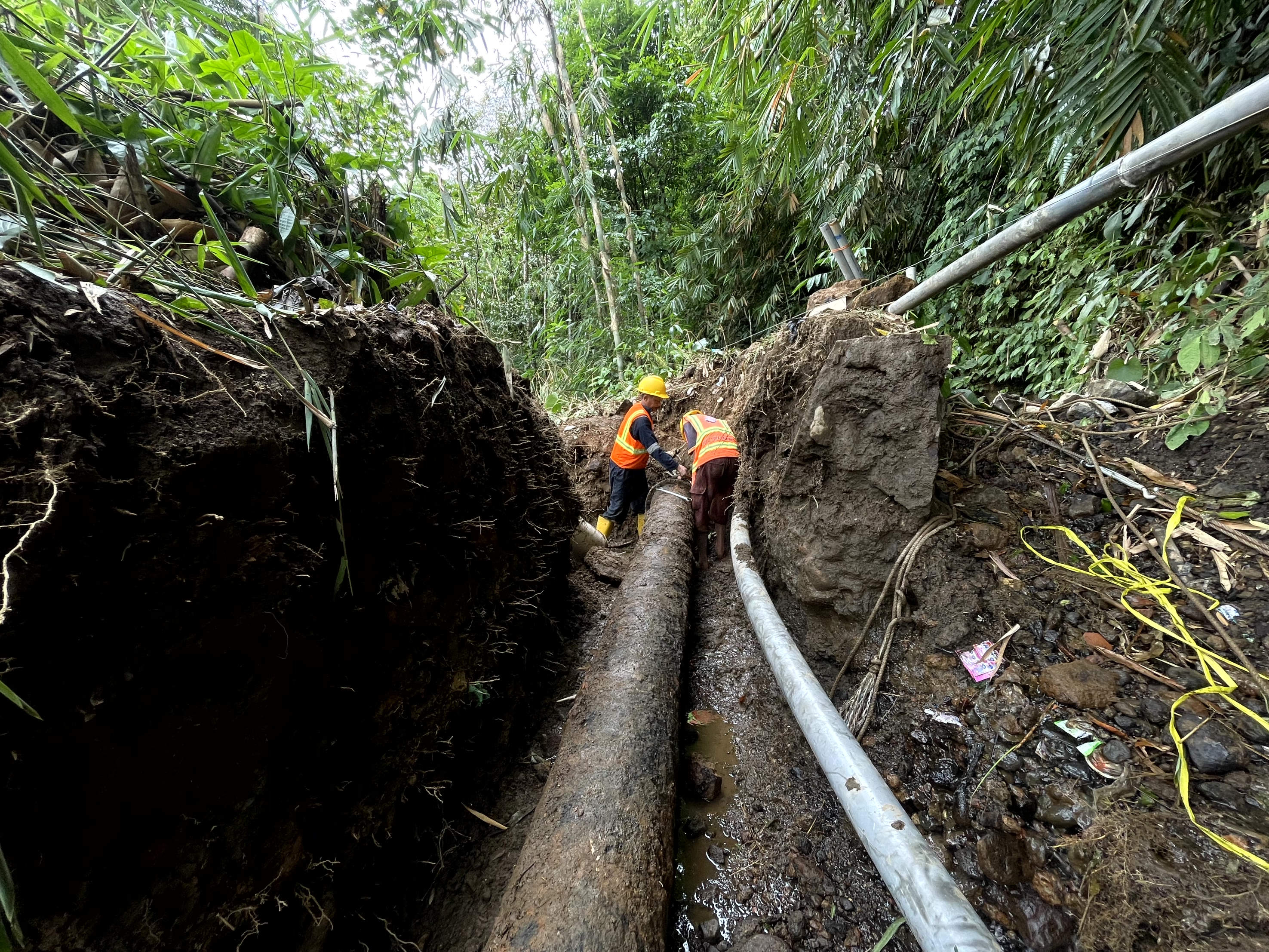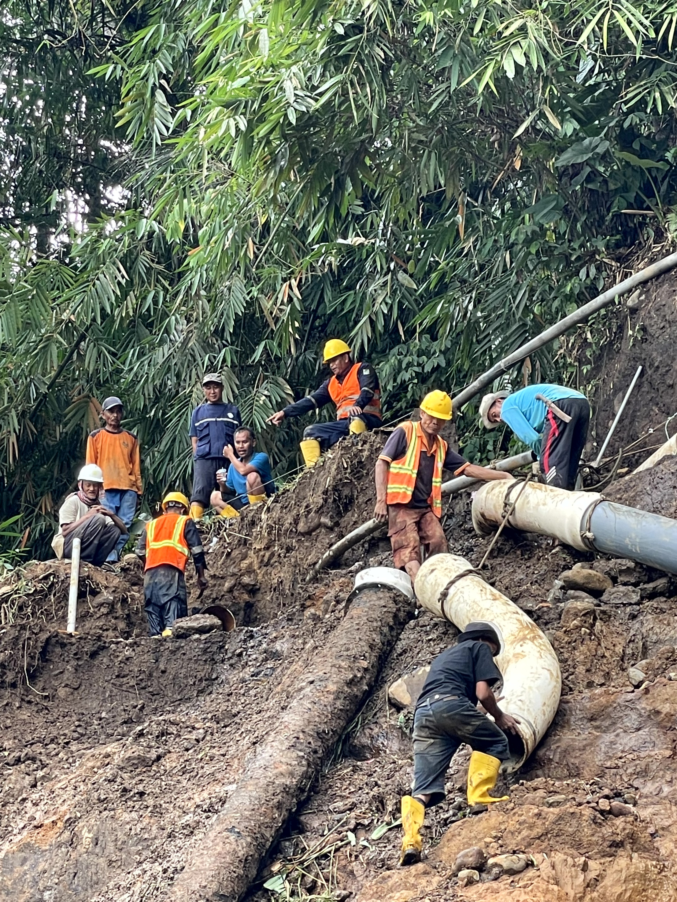 Tasikmalaya, 12 November 2025 — Cuaca dan medan yang ekstrem tidak menjadi halangan bagi tim Pengendalian Kehilangan Air dalam melaksanakan tugas di lapangan. Dua pipa distribusi berdiameter 300 mm yang sebelumnya terbawa longsor pada Rabu, 5 November 2025, menyebabkan terputusnya aliran air bersih ke sejumlah wilayah pelayanan regional.